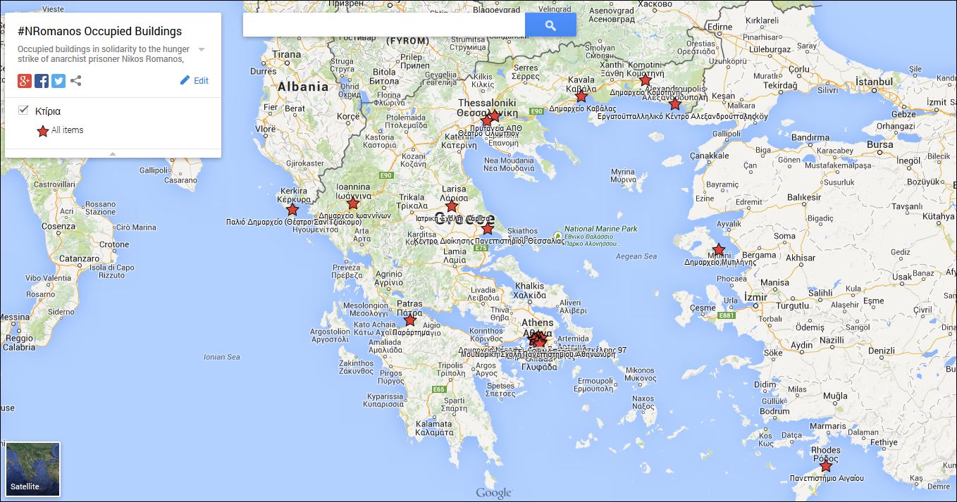 Το hashtag #NRomanos μετά το Twitter και το Facebook ενεργοποιείται και στην υπηρεσία google maps η οποία στην αναζήτηση με την λέξη #NRomanos Occupied Buildings απεικονίζει με δείκτες όλα τα σημεία της ελληνικής επικράτειας στα οποία βρίσκονται σε εξέλιξη καταλήψεις για τον Νίκο Ρωμανό.
