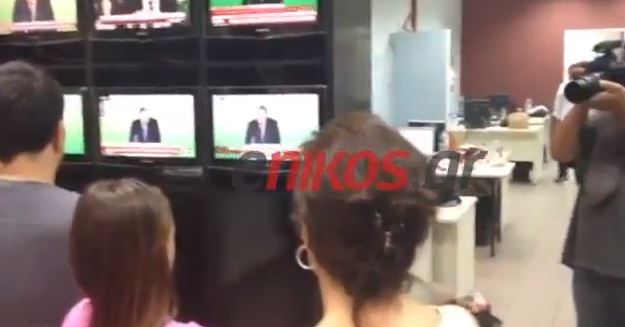 Μπροστά στις οθόνες ήταν “καρφωμένοι” οι εργαζόμενοι της ΕΡΤ, κατά τη διάρκεια των δηλώσεων του Ευάγγελου Βενιζέλου.