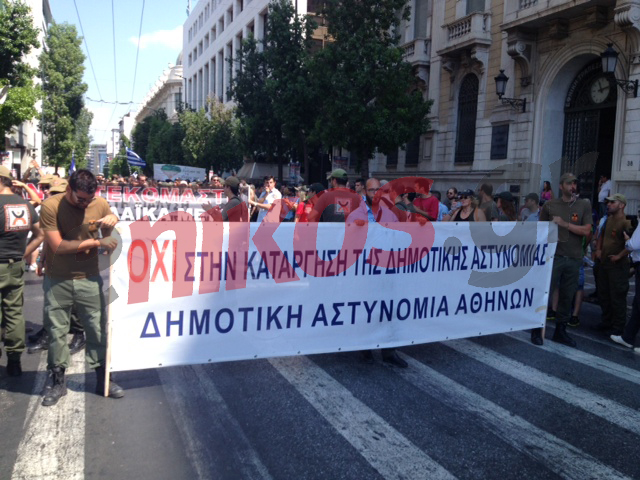 Δείτε φωτογραφίες από την συγκέντρωση και την πορεία των δημοτικών αστυνομικών στην οδό Σταδίου και την πορεία.