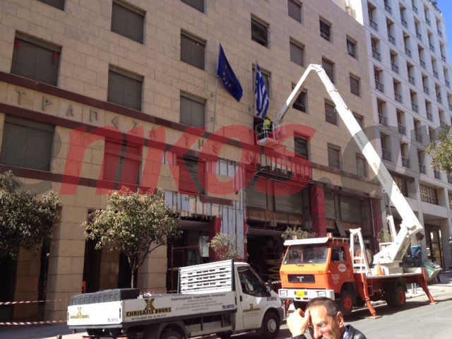 Τα συνεργεία συνεχίζουν τις εργασίες για την αποκατάσταση των ζημιών που προκλήθηκαν στο κτίριο της Τράπεζας της Ελλάδος στην οδό Αμερικής από την χθεσινή έκρηξη του παγιδευμένου αυτοκινήτου. Όπως βλέπετε στις φωτογραφίες εργασίες γίνονται και στα γύρω κτίρια, τα οποία επίσης υπέστησαν ζημιές από την έκρηξη.