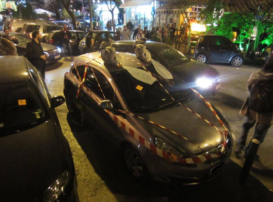 ΦΩΤΟ-Οι «γάιδαροι» στολίζουν τα παράνομα σταθμευμένα ΙΧ
