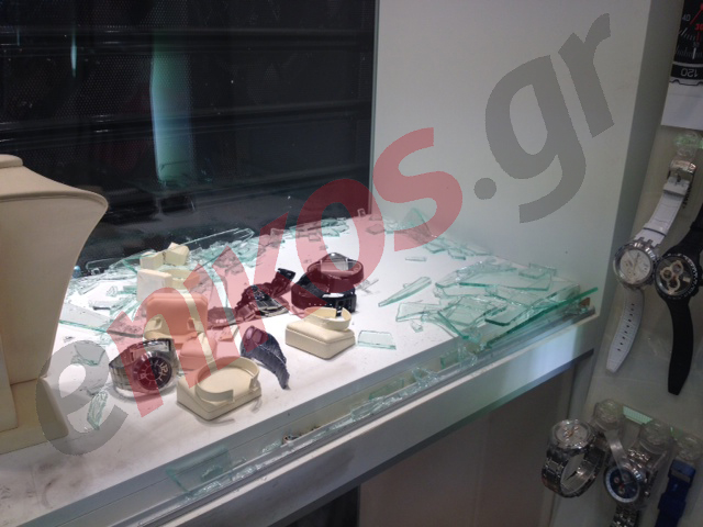 Οι δράστες έσπασαν την τζαμαρία του καταστήματος, χωρίς, ωστόσο, να αφαιρέσουν κοσμήματα ή χρήματα από το κατάστημα και εξαφανίστηκαν, εγκαταλείποντας το όχημά τους.