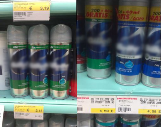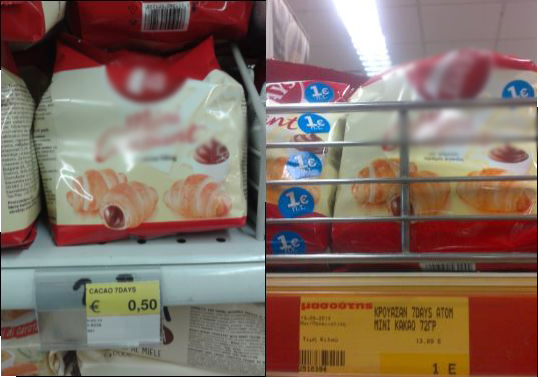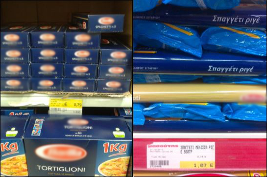 Στις παρακάτω φωτογραφίες, θα δείτε αριστερά, το προϊόν στην Ιταλία και στα δεξιά, το αντίστοιχο σε ελληνικό Σούπερ Μάρκετ.