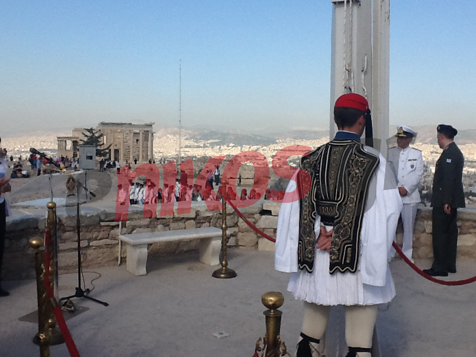 Η έπαρση της σημαίας γίνεται αυτή την ώρα, ενώ θα ακολουθήσει κατάθεση στεφάνων στο Μνημείο του Άγνωστου Στρατιώτη. Τη φωτογραφία μας την έστειλε αναγνώστης του enikos.gr.