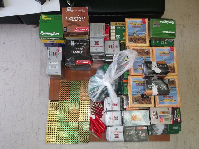 Κατά τον έλεγχο εντοπίστηκαν και κατασχέθηκαν δύο πιστόλια, ένα περίστροφο, τέσσερις γεμιστήρες, 1850 φυσίγγια διαφόρων τύπων και διαμετρημάτων, 8 κυνηγετικές καραμπίνες, δύο ξίφη, μία ξιφολόγχη, δύο μαχαίρια και 8 κροτίδες.