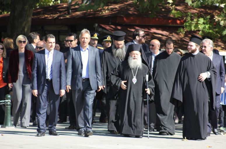 Νωρίτερα είχε τελεστεί Δοξολογία στο Μητροπολιτικό Ναό Αγίου Νικολάου και επιμνημόσυνη δέηση στο Ηρώο των Πεσόντων, μπροστά από τη ΣΜΥ.