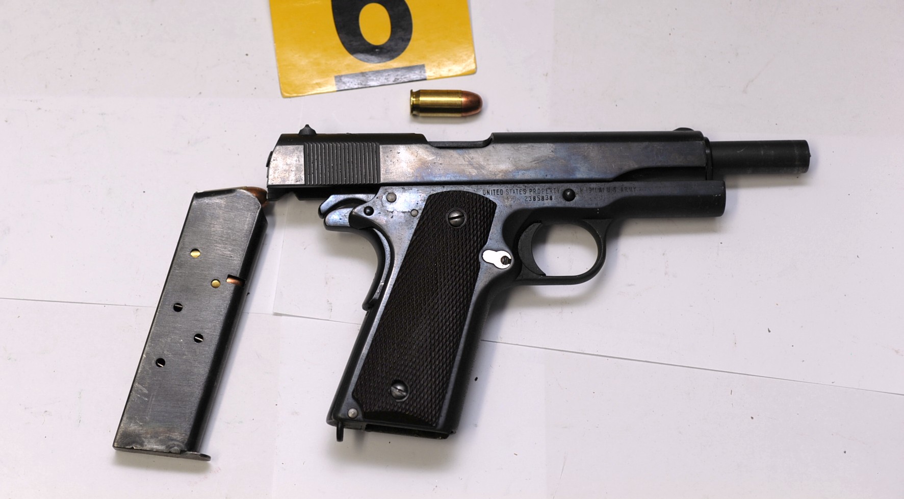 Στο σπίτι του βρέθηκαν και κατασχέθηκαν, 12 πολεμικά τυφέκια διαφόρων τύπων, τέσσερα πιστόλια, δύο κυνηγετικά όπλα (για τα οποία έχει χορηγηθεί άδεια κατοχής, πλην όμως φέρουν προσαρμοσμένη στον κορμό τους διόπτρα), 1.872 φυσίγγια διαφόρων διαμετρημάτων και πολλά εξαρτήματα όπλων.