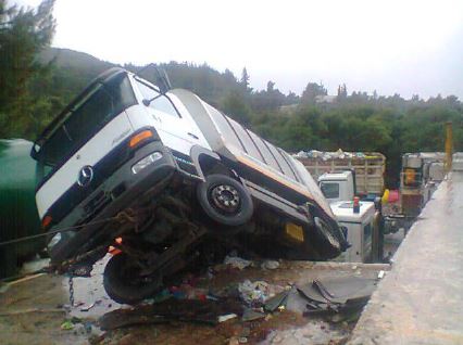 Ευτυχώς που το συγκράτησε το κοντέινερ και αποφεύχθηκαν τα χειρότερα. Στο σημείο έφτασε αμέσως ο προϊστάμενος της καθαριότητας, τεχνίτες από το συνεργείο του Δήμου και με τη βοήθεια ιδιωτικής εταιρείας απέσυραν το απορριμματοφόρο χωρίς να τραυματισθεί κανένας εργαζόμενος.