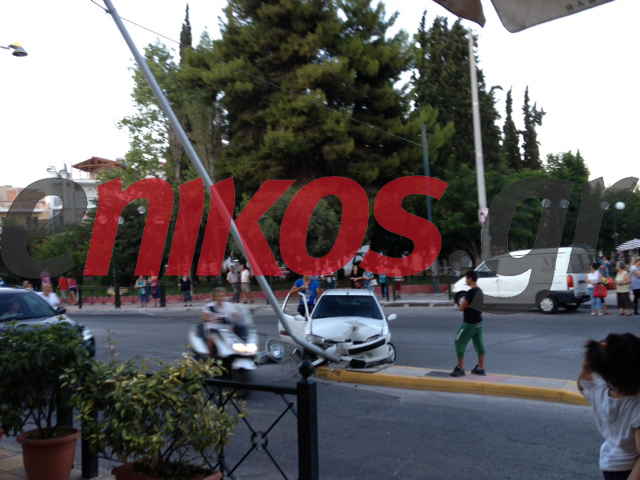 Όλα ξεκίνησαν όταν στην οδό Περικλεούς στον Άγιο Ιερόθεο το άσπρο αυτοκίνητο, που βλέπετε στις φωτογραφίες, προσπάθησε να κάνει ανάστροφη. Άγνωστο το πως-αν και οι αυτόπτες μάρτυρες αναφέρουν ότι ο οδηγός έτρεχε- προσέκρουσε πάνω στην κολώνα με αποτέλεσμα να την «ξεριζώσει».