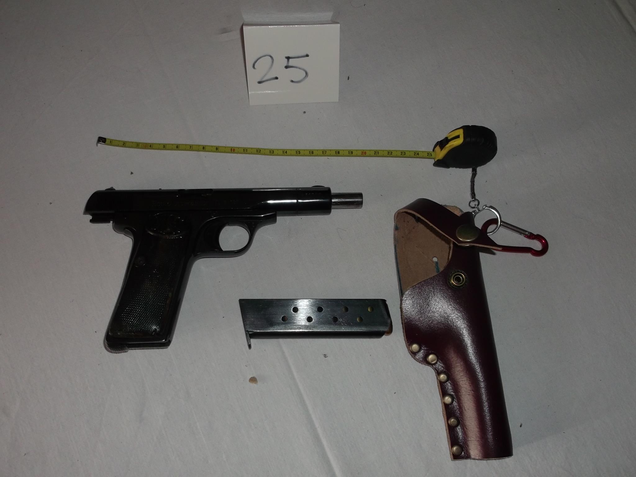 • πιστόλι μέσα σε δερμάτινη θήκη, με γεμιστήρα που περιείχε οκτώ φυσίγγια