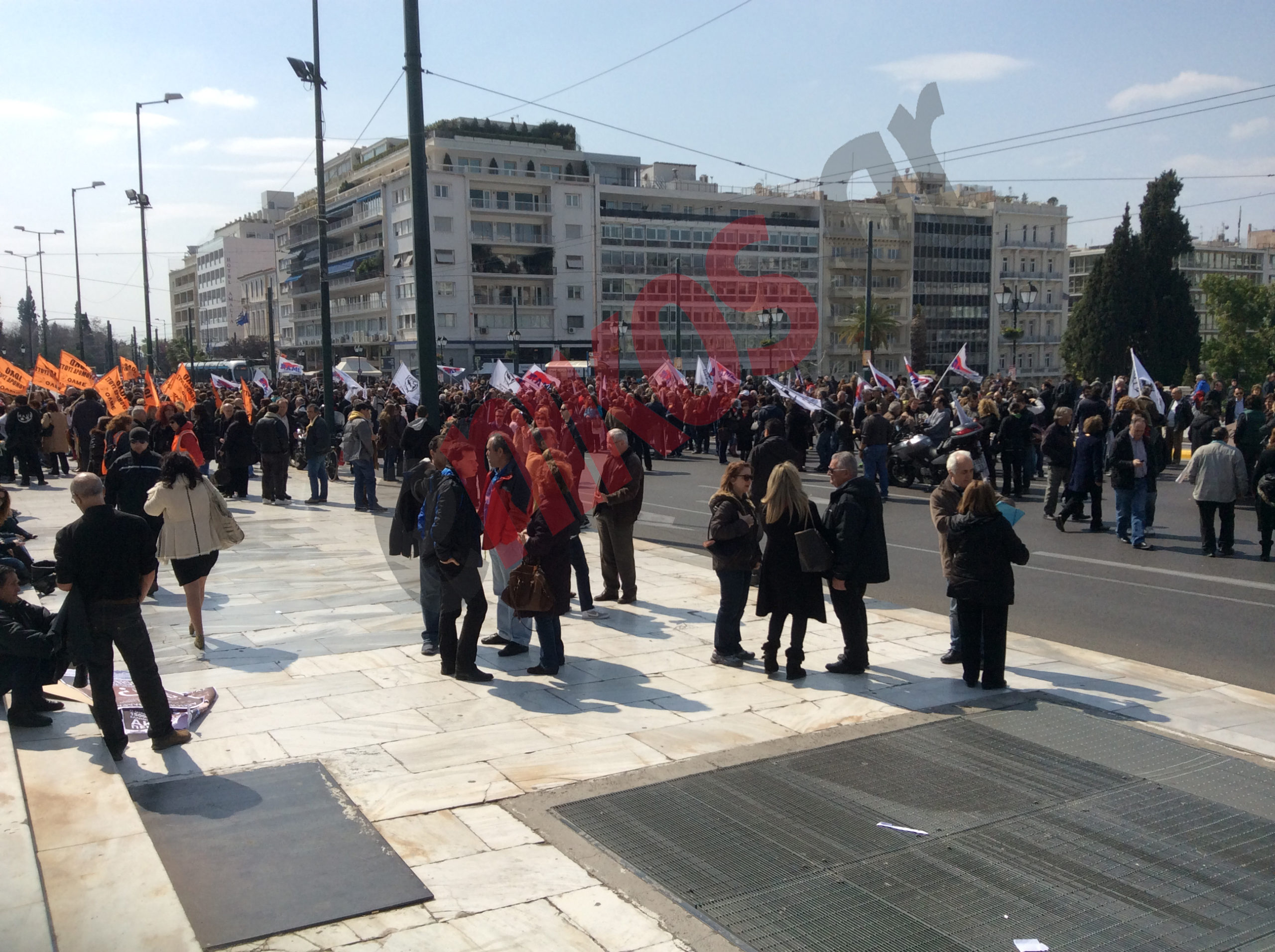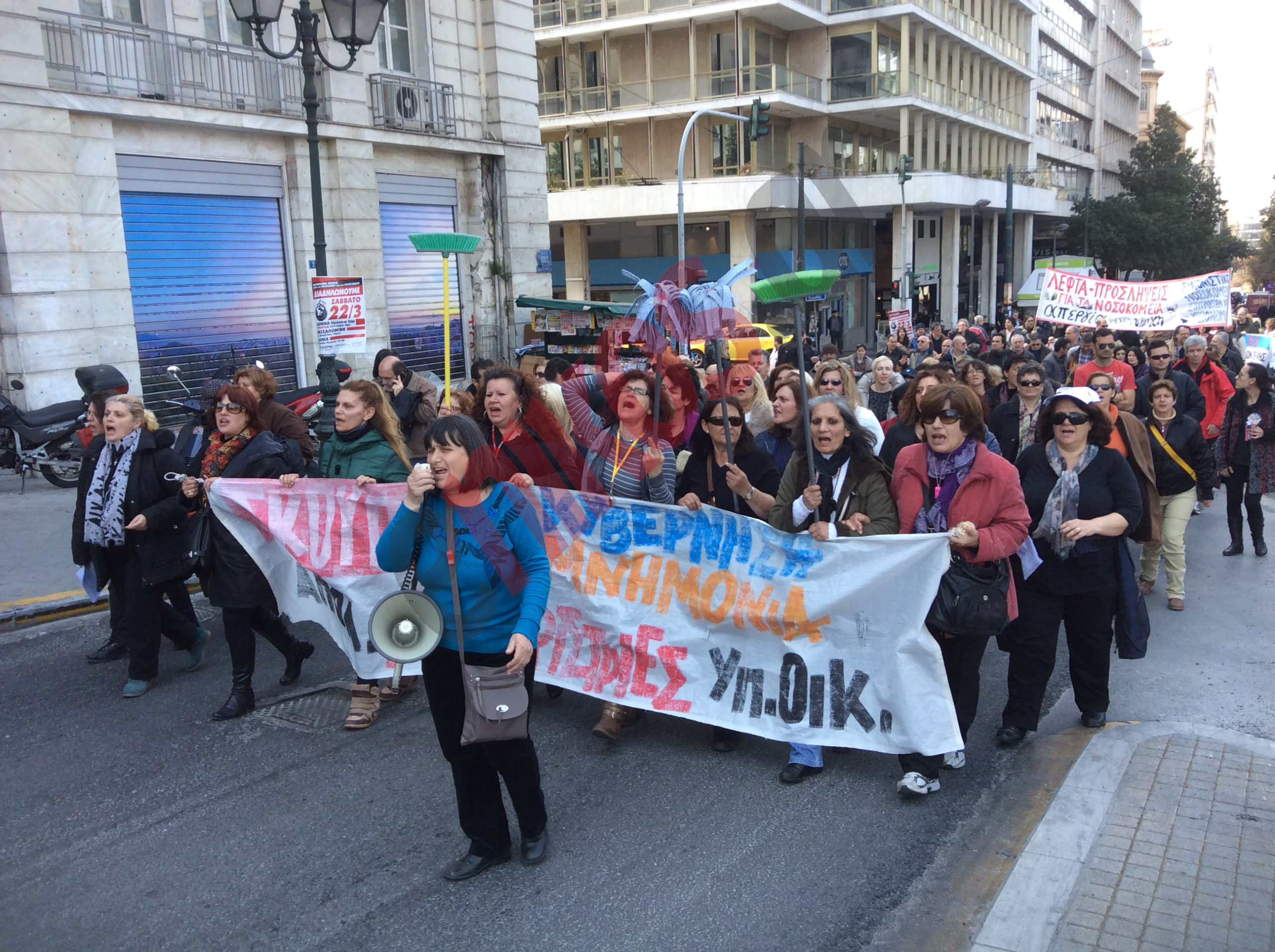 Δυναμικό παρών δίνουν το ΠΑΜΕ, η ΓΣΕΕ και οι καθαρίστριες του υπουργείου Οικονομικών.