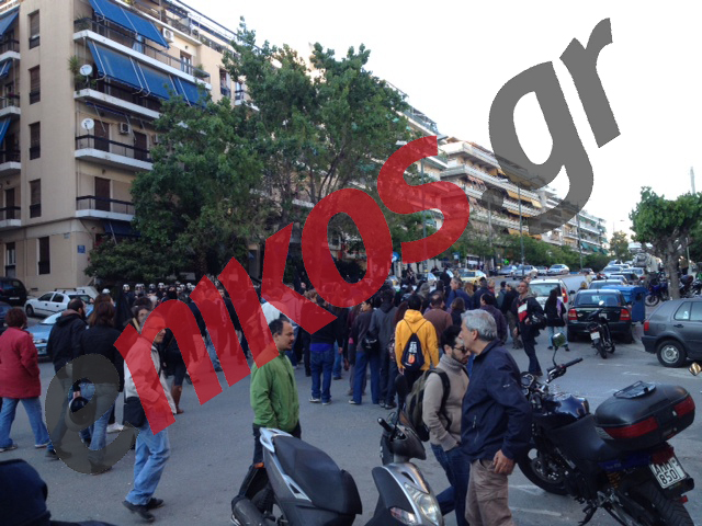 Οι αντιφασίστες που είχαν συγκεντρωθεί νωρίτερα έξω από την είσοδο του Πολυδύναμου Κέντρου του Δήμου Αθηναίων στους Αμπελόκηπους, αποχωρούν πραγματοποιώντας πορεία στην Πανόρμου.