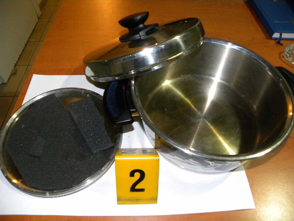 Από την αστυνομική έρευνα προέκυψε ότι οι γονείς παρέδωσαν το μαγειρικό σκεύος στο γιο τους, αφού προηγουμένως είχαν αποκρύψει τα κινητά στον πάτο του.