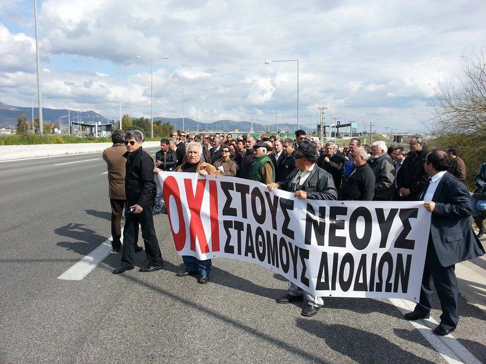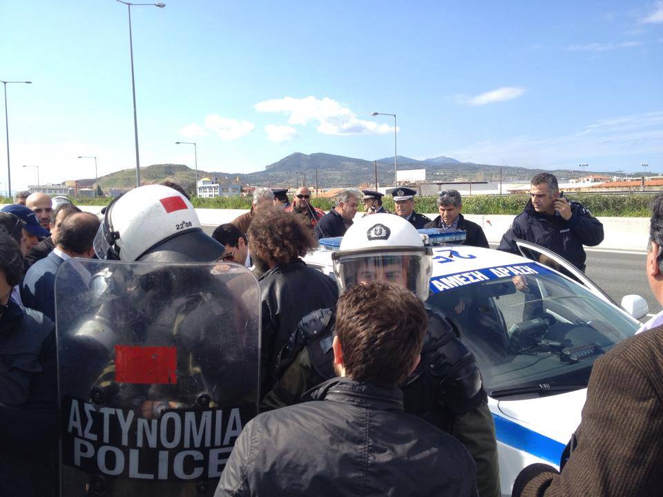 Στην αστυνομική διεύθυνση Δυτικής Αττικής βρίσκονται οι οκτώ προσαχθέντες στα διόδια του κόμβου Πάχης Μεγάρων. Μεταξύ αυτών ο ο δήμαρχος Μεγάρων Γιάννης Μαρινάκης , ο αντιδήμαρχος Κλεάνθης Βαρελάς , ο πρώην πρόεδρος του τοπικού συμβουλίου Νίκος Σωτηρίου και ο δημοτικός σύμβουλος Αντώνης Χοροζανης.
