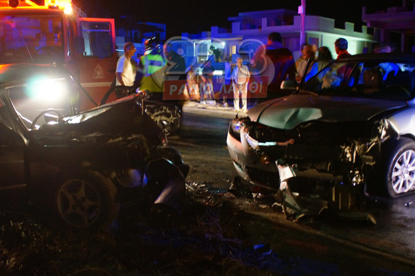 Σφοδρή σύγκρουση δύο επιβατηγών ΙΧ σημειώθηκε χθες στις 11 το βράδυ στο 1ο χλμ της επαρχιακής οδού Ιεράπετρας – Μακρύ γιαλού.