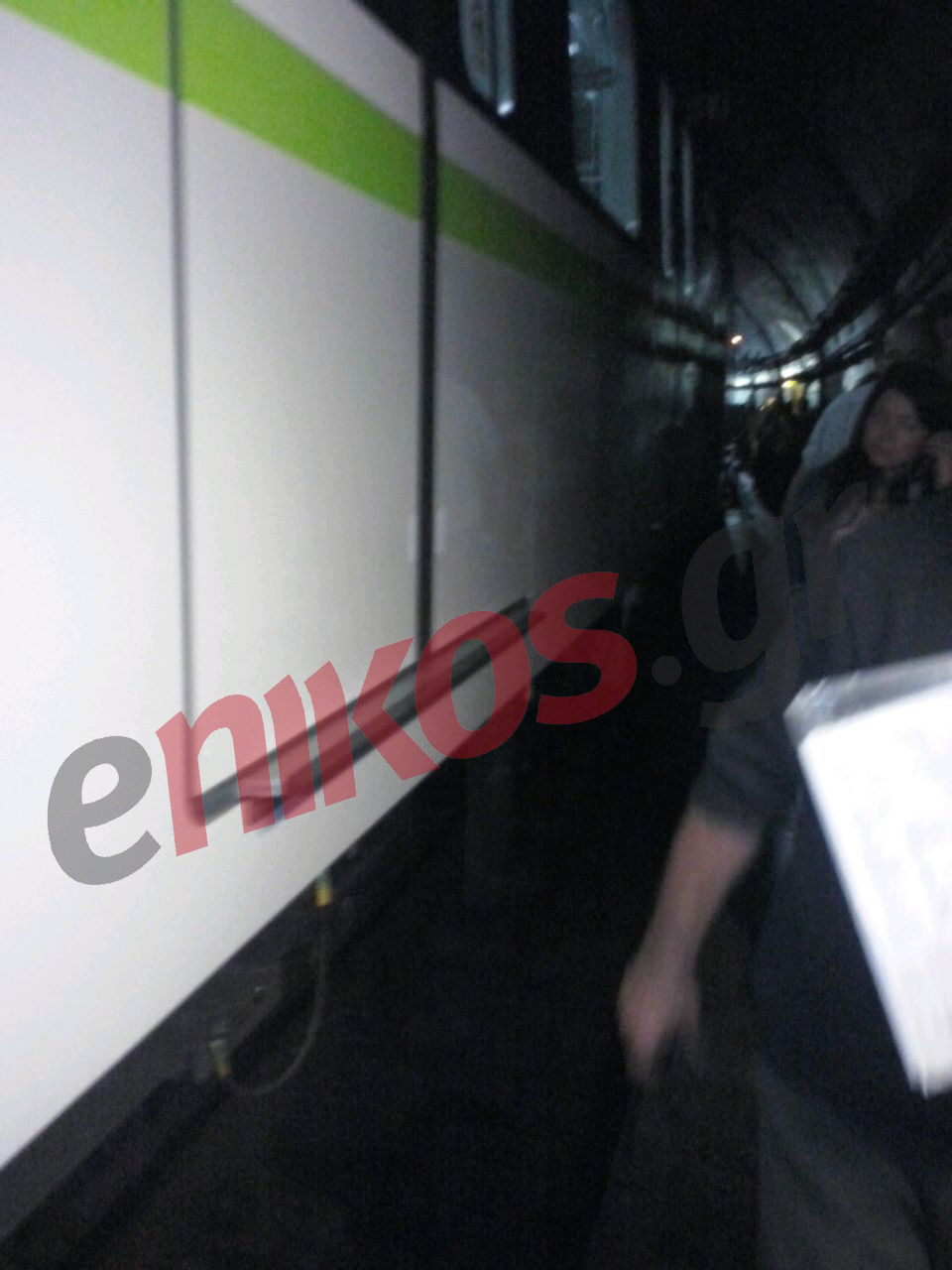 Οι επιβάτες με τη συνδρομή του οδηγού άνοιξαν την πόρτα και περπάτησαν ανάμεσα στις ράγες μέχρι το σταθμό της Αττικής υπό το φως των κινητών τηλεφώνων τους.