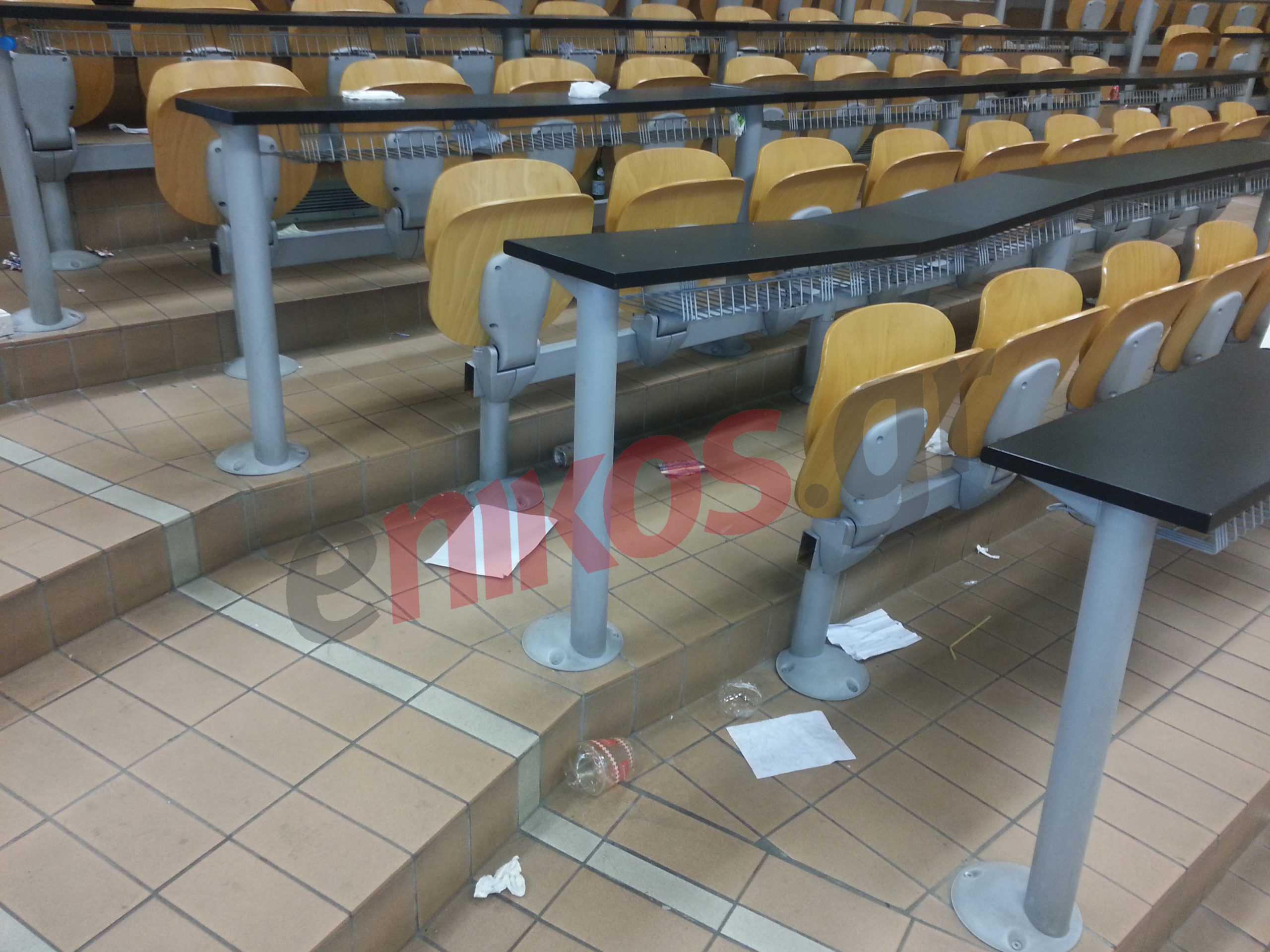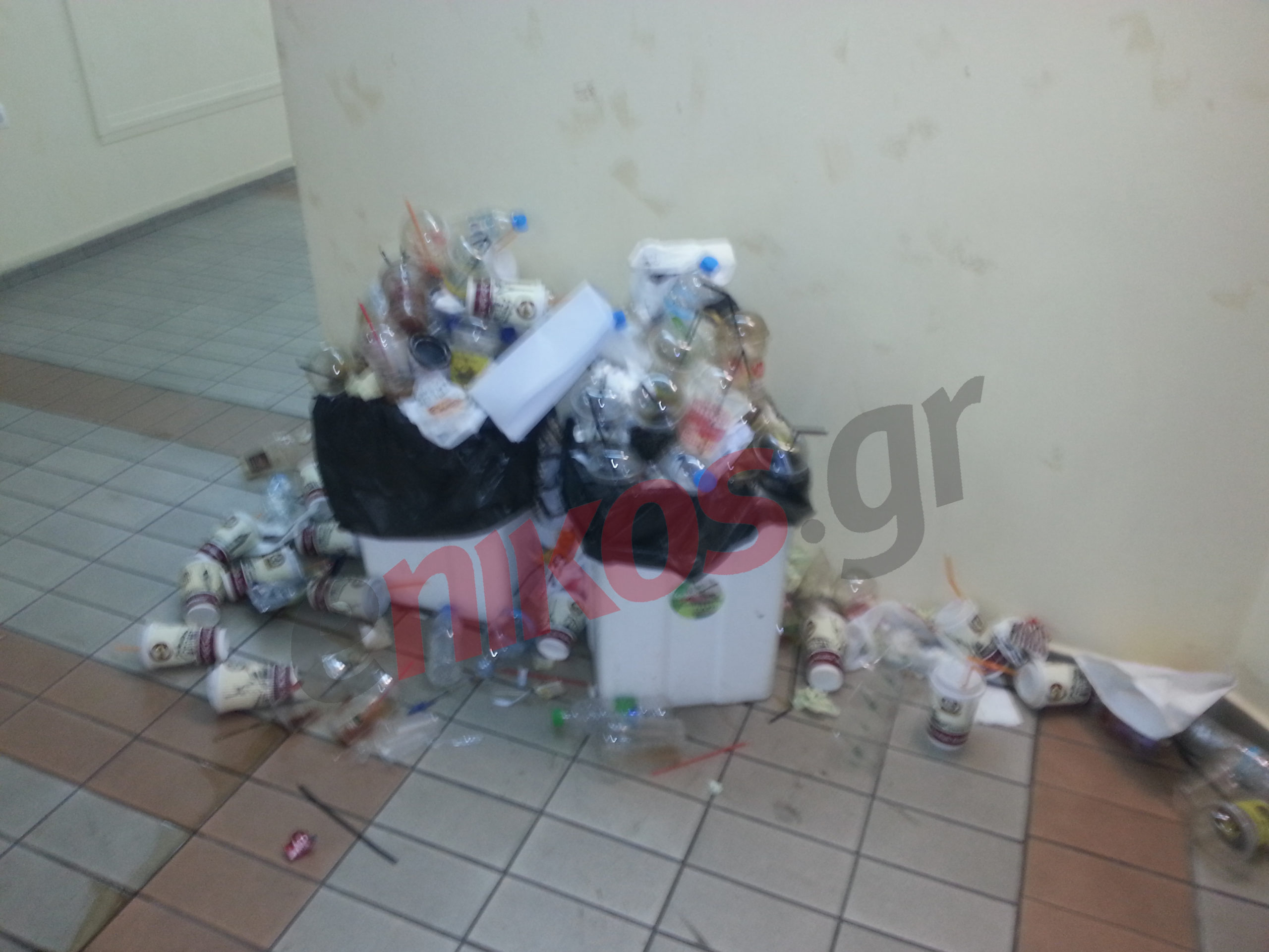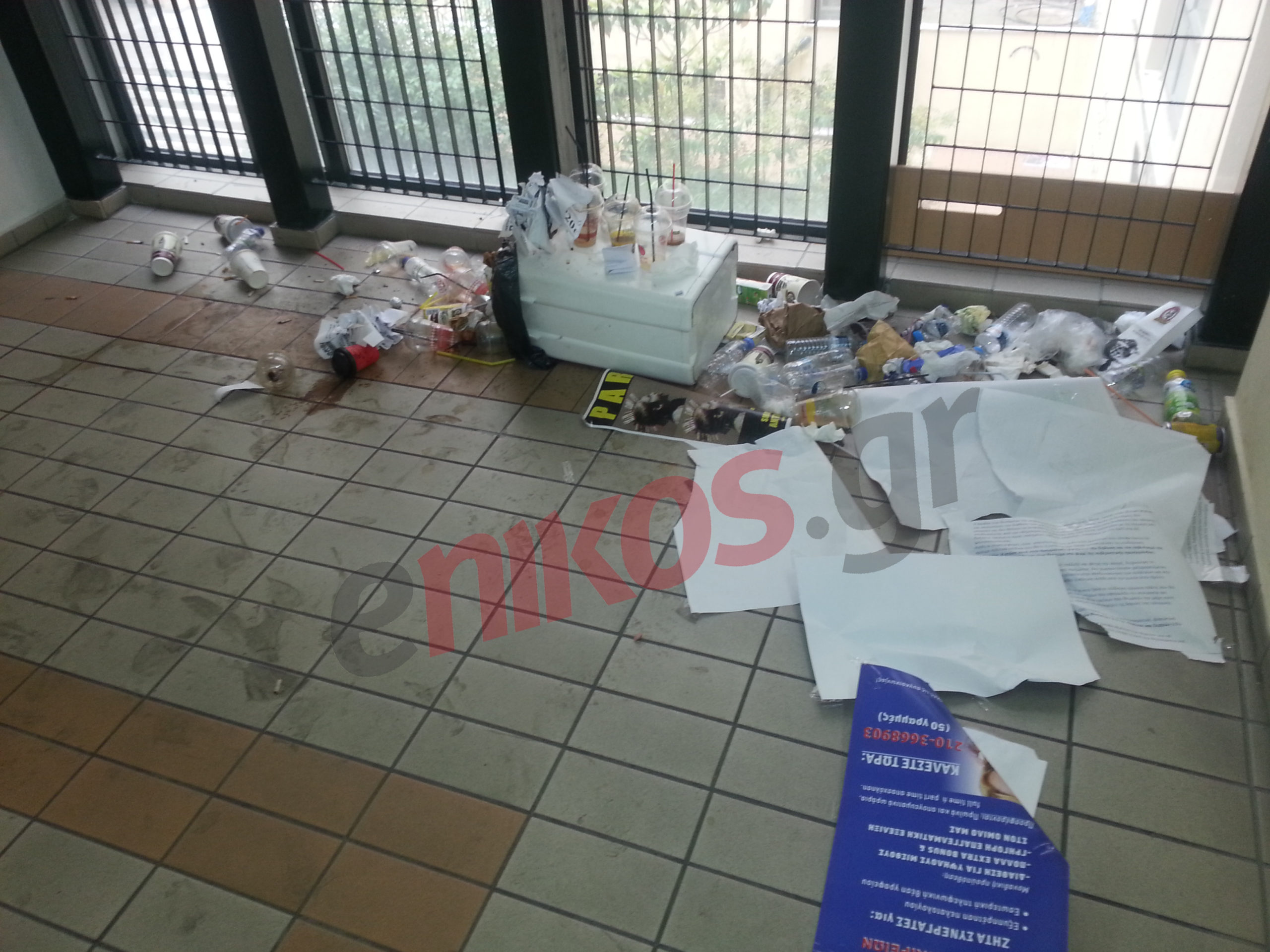 Εικόνα «χωματερής» παρουσιάζει το κτίριο της νομικής σχολής Αθηνών καθώς τις αίθουσες και τους διαδρόμους έχουν κατακλύσει σκουπίδια τα οποία πέφτουν από τους ήδη γεμάτους κάδους.