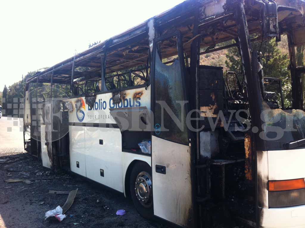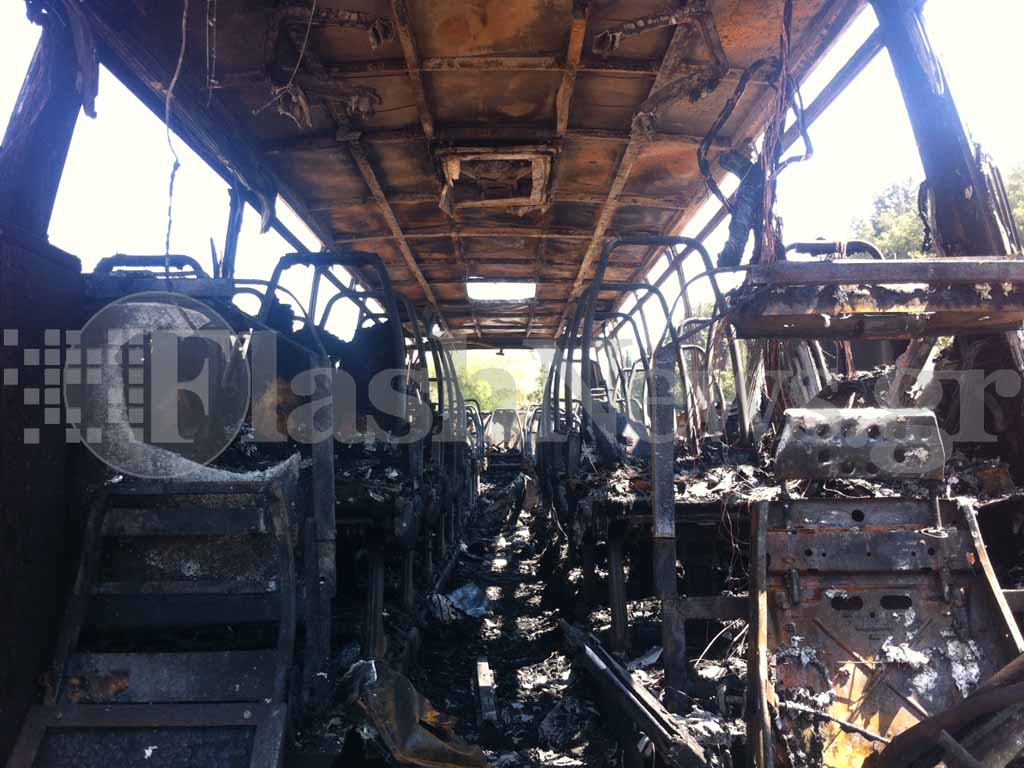 ΦΩΤΟ-Στάχτη το τουριστικό λεωφορείο
