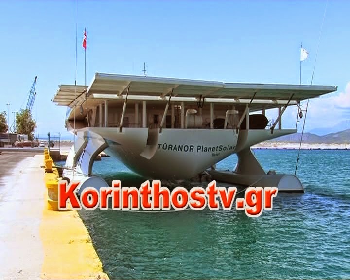 Μέχρι την Δευτέρα 28 Ιουλίου 2014 θα παραμείνει στο λιμάνι της Κορίνθου, όπου έφθασε το μεσημέρι της Πέμπτης, το MS Turanor PlanetSolar, το μεγαλύτερο καταμαράν στον κόσμο που κινείται αποκλειστικά με ηλιακή ενέργεια.