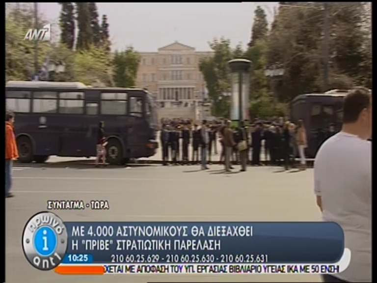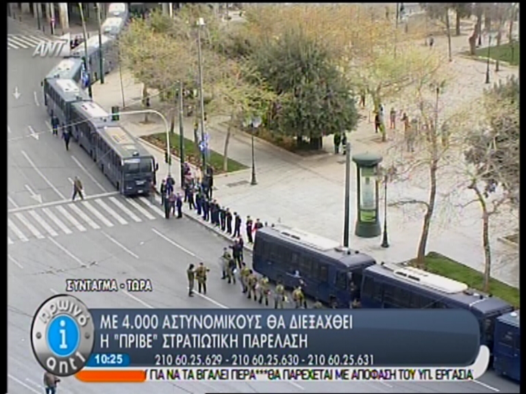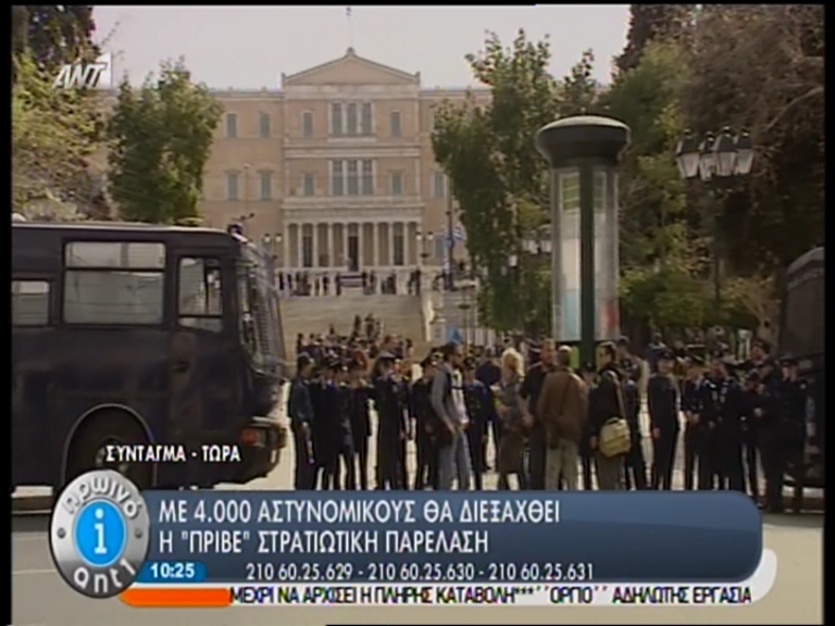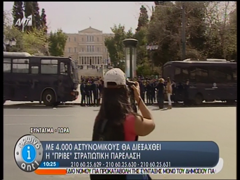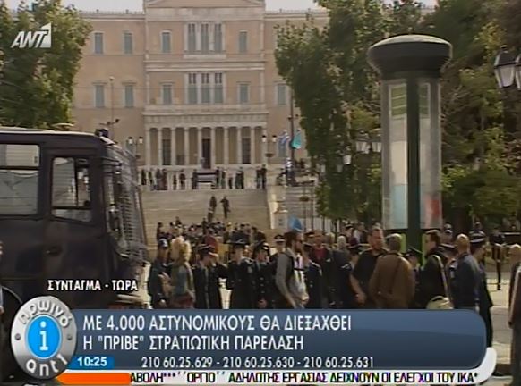 Κάτω από την πλατεία Συντάγματος βρίσκονται οι δημοσιογράφοι οι οποίοι από αυτό το σημείο θα προσπαθήσουν να καλύψουν την στρατιωτική παρέλαση.