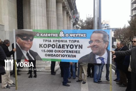 Στη Θεσσαλονίκη από το πρωί πραγματοποιούν συγκέντρωση διαμαρτυρίας έξω από την Τράπεζα της Ελλάδος που βρίσκεται στη συμβολή των οδών Τσιμισκή με Ι. Δραγούμη. Οι μικροομολογιούχοι κρατούν ένα πανό με τον Σαμαρά και τον Βενιζέλο, τους οποίους χαρακτηρίζουν «ψεύτη και κλέφτη», αντίστοιχα.