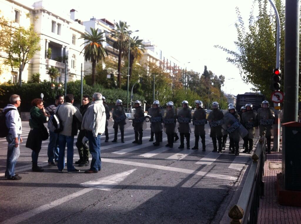 Τα μέλη της επιτροπής αγώνα ζήτησαν να παραδώσουν στη Βουλή τα αιτήματά τους ενάντια στην εξόρυξη χρυσού στη Χαλκιδική, αλλά εμποδίστηκαν από τις αστυνομικές δυνάμεις στη Βασιλίσσης Σοφίας.