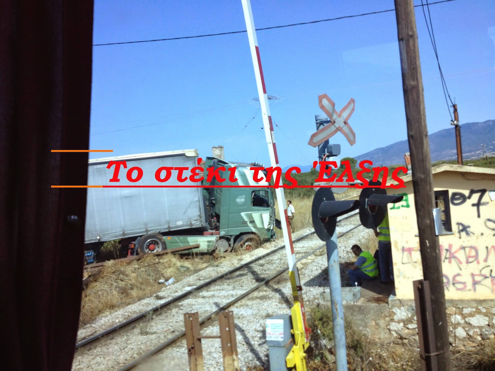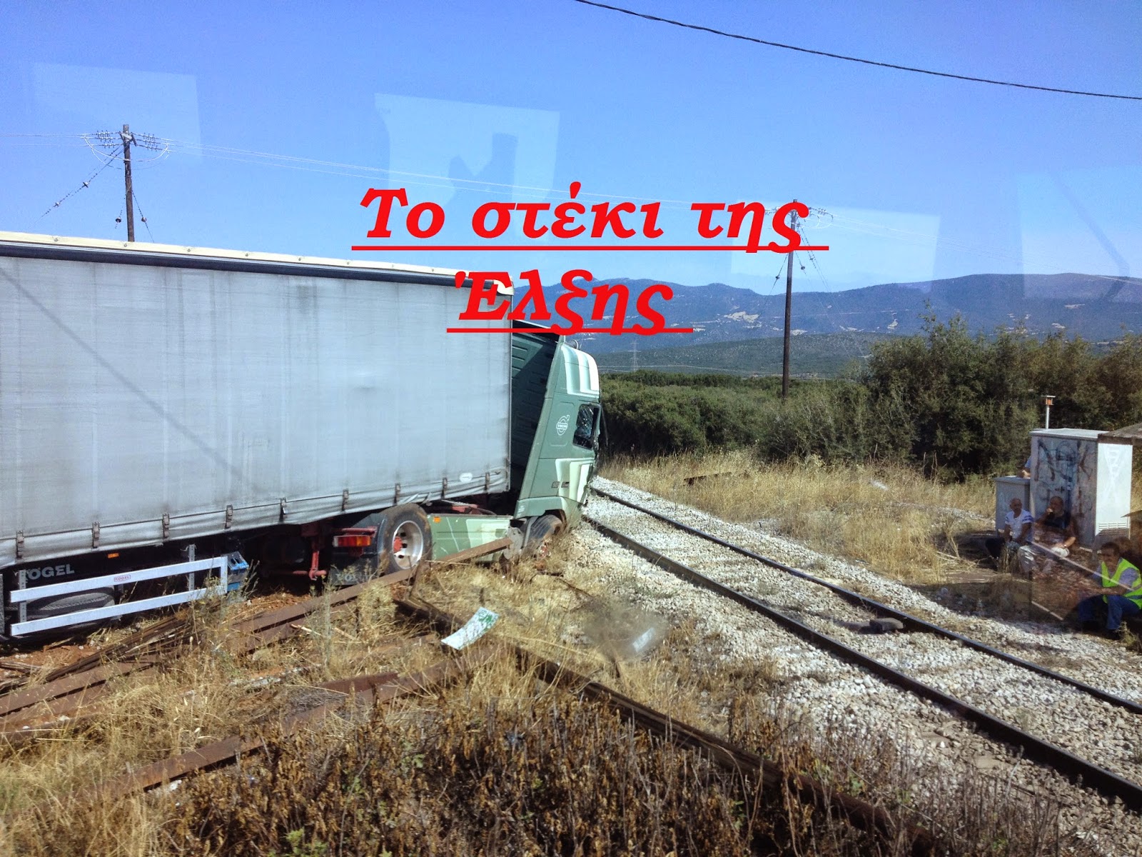 Πριν απο λίγο η αμαξοστοιχία έφυγε απο το σημείο, αλλά η γραμμή παραμένει κλειστή μέχρι στιγμής, αφού η νταλίκα έχει διπλώσει δίπλα στην γραμμή και σε σημείο που κλείνει την κυκλοφορία.