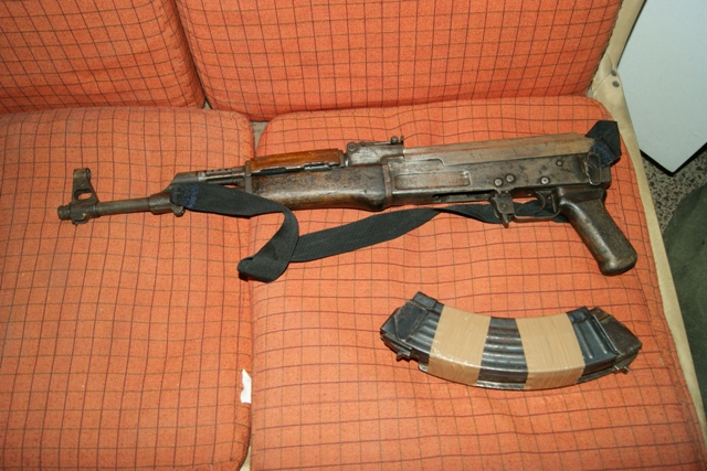 Δύο πολεμικά τυφέκια Kalashnikov με τρεις γεμιστήρες, ένα πιστόλι, διαμετρήματος 0.22 mm, με γεμιστήρα, δύο χειροβομβίδες αμυντικού τύπου (F1), δύο πυροδοτικοί μηχανισμοί χειροβομβίδων (πυροκροτητές).
