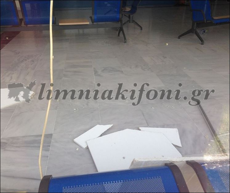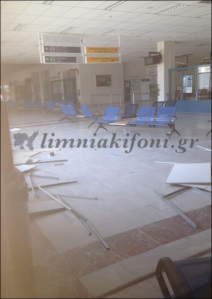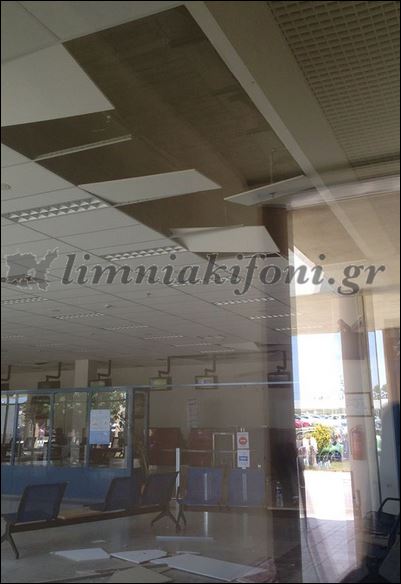 Από τον ισχυρό σεισμό που σημειώθηκε νωρίτερα στη περιοχή του βορείου Αιγαίου κατέρρευσε η ψευδοροφή στην αίθουσα των εκδοτηρίων στο αεροδρόμιο της Λήμνου.