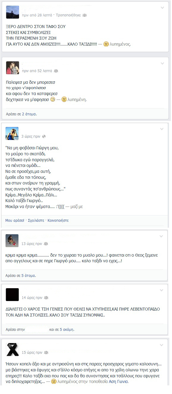 Σημειώνεται ότι από το απόγευμα της Κυριακής που μαθεύτηκε το τραγικό γεγονός, οι φίλοι του, θέλησαν να χαιρετήσουν τον άτυχο 25χρονο με μηνύματα τους στο Facebook.