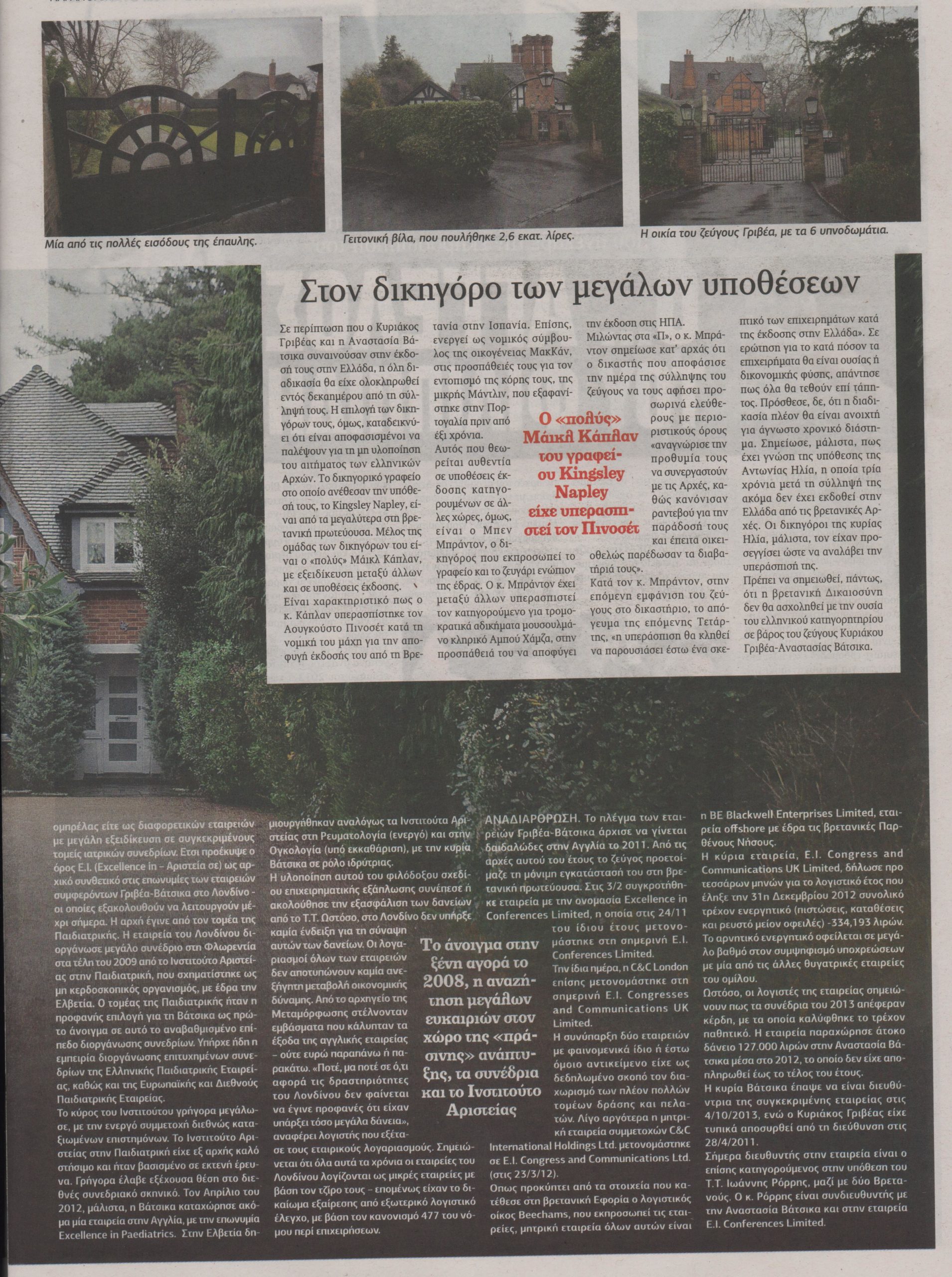 Το 2011 ήταν μία καμπή στη δραστηριότητα του ζεύγους Γριβέα, που, όπως αποδείχθηκε, προετοίμαζε τη μόνιμη εγκατάσταση στο Λονδίνο, την ώρα που η επιχείρηση στην Ελλάδα όδευε προς κλείσιμο, σύμφωνα με τα Παραπολιτικά.