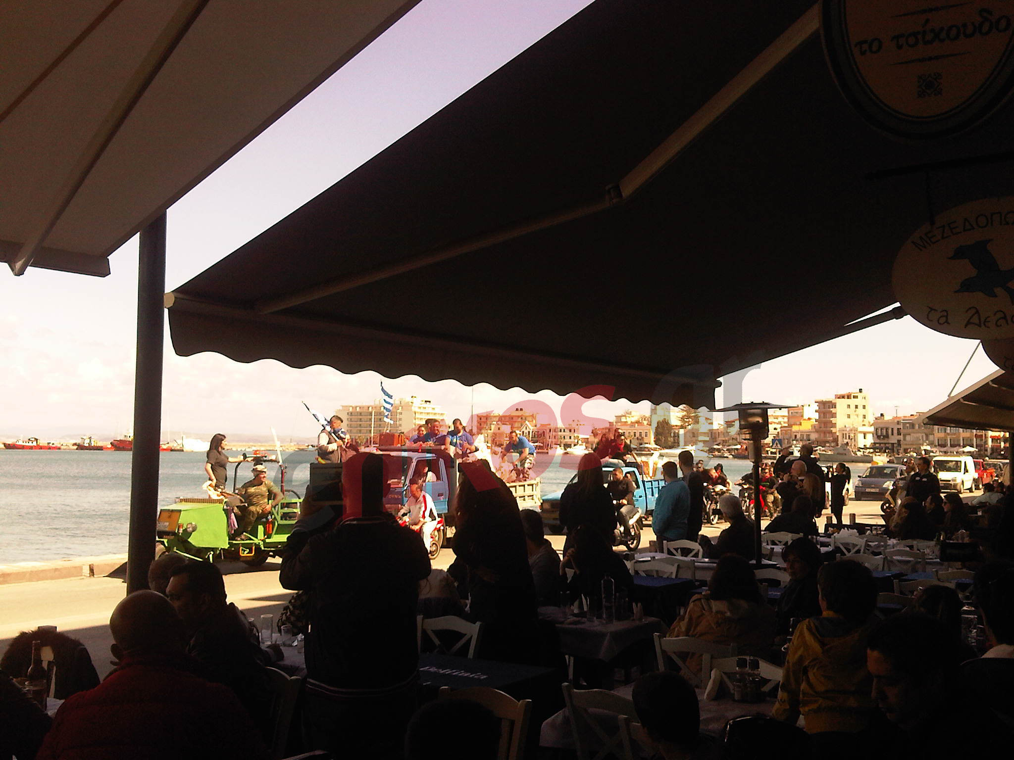 Μια μεγάλη πομπή από φορτηγάκια που μεταφέρουν πυρομαχικά για τον ρουκετοπόλεμο και καλούν τον κόσμο στον Βροντάδο το βράδυ της Ανάστασης είναι σε εξέλιξη στο λιμάνι της Χίου.