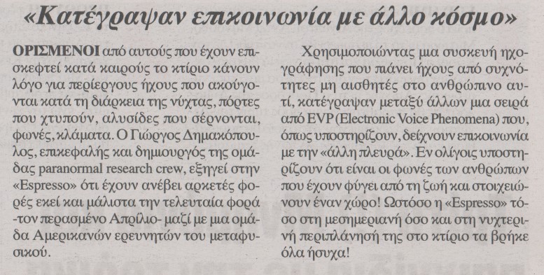 Ένα κτίριο που συμπληρώνει την τρίτη δεκαετία της εγκατάλειψής του και η φήμη του συνοδεύεται από ιστορίες κακοτυχίας , αρρώστιας, πόνου, θανάτου αλλά και σενάρια σατανισμού και “μεταφυσικών” φαινομένων.