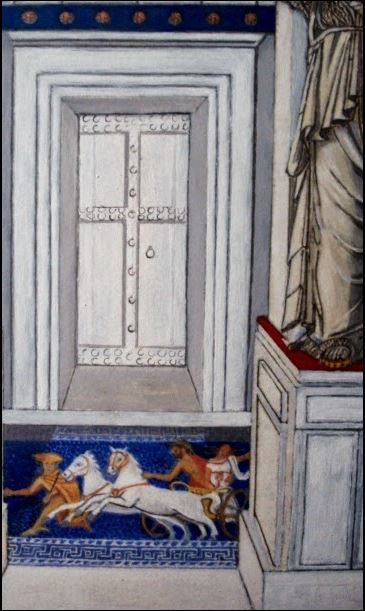 Ζωγραφίζοντας ακόμα την δεύτερη και τελευταία έγχρωμη αναπαράσταση της Πύλης των Καρυατίδων και εφαρμόζοντας ένα λελογισμένο συνδυασμό πραγματικών και υποθετικών χρωμάτων, έρχομαι σταδιακά αντιμέτωπος με μια αναδυόμενη πολυτέλεια. Μια καλαισθησία που πραγματικά έχει εκπλήξει και εμένα τον ίδιο για την επιμέλεια της κατασκευής της, όσο και για την αφθονία και τον πλούτο των χαρακτηριστικών της, όπως αυτή αποτυπώνεται στα επί μέρους δομικά, καλλιτεχνικά και διακοσμητικά στοιχεία του ταφικού μνημείου.