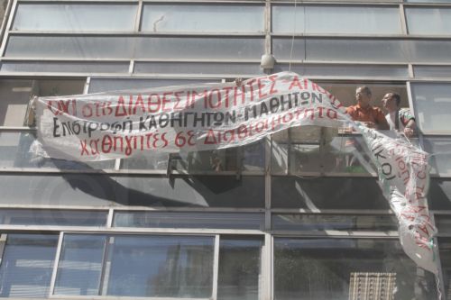 ΦΩΤΟ-Το πανό έξω από το υπουργείο Παιδείας
