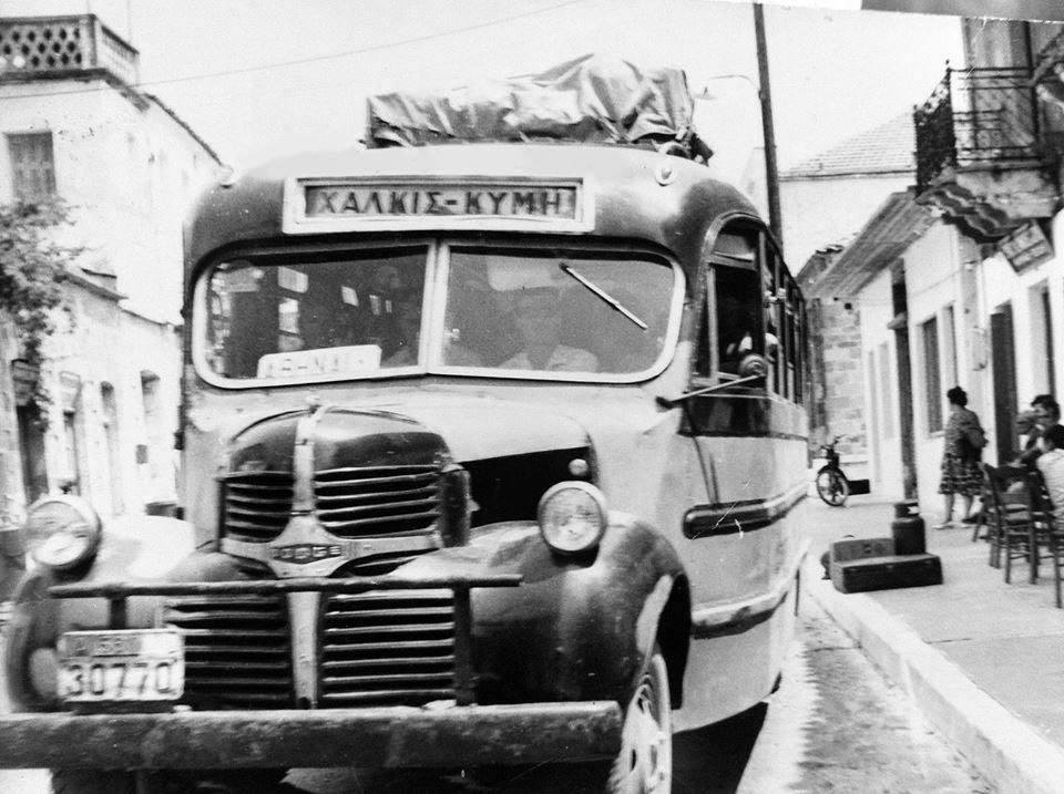 Κάνουμε ταξίδι στον χρόνο με τη φωτογραφία του λεωφορείου που δημοσιεύει το evianews.gr. Πρόκειται για το πρώτο υπεραστικό λεωφορείο μάρκας Dodge που έκανε το δρομολόγιο Χαλκίδα-Κύμη τη δεκαετία του ’50.