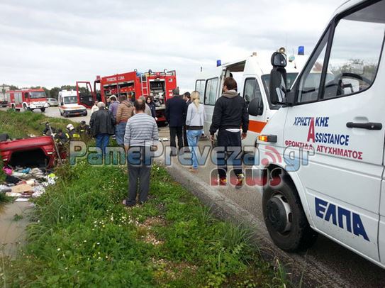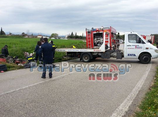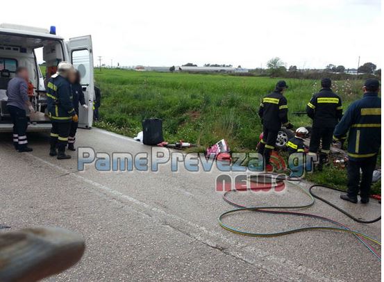 Στο σημείο βρέθηκαν δυνάμεις της πυροσβεστικής και της τροχαίας από τη Βόνιτσα, καθώς και ασθενοφόρα του ΕΚΑΒ από το νοσοκομείο της Πρέβεζας και ξεκίνησε η επιχείρηση απεγκλωβισμού των δύο ατόμων.
