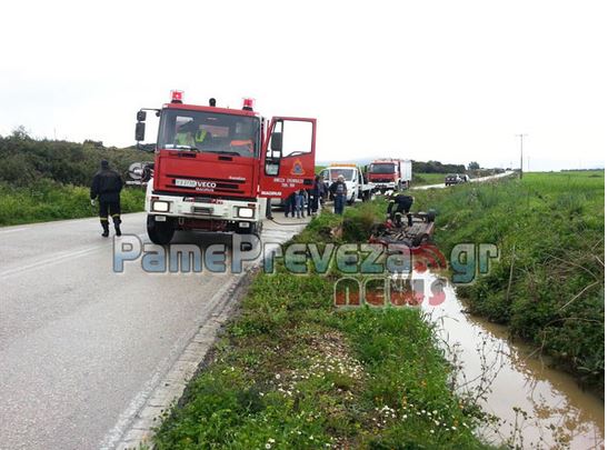 Σύμφωνα με πληροφορίες, ΙΧ αυτοκίνητο που κινούνταν στο δρόμο Άκτιο – Λευκάδας, μετά την 131 Σμηναρχία Μάχης εξετράπη της πορείας του, με αποτέλεσμα να πέσει μέσα σε χαντάκι.