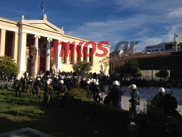 Επέμβαση πραγματοποιεί αυτή την στιγμή η αστυνομία στα προπύλαια για να απομακρύνει τους διαδηλωτές από το χώρο. Προηγήθηκε ένταση ανάμεσα στις αστυνομικές δυνάμεις και τους συγκεντρωμένους.
