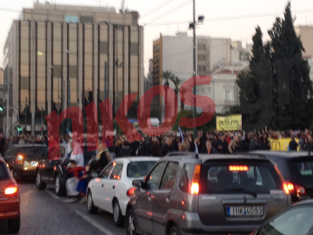 Η Βασιλίσσης Σοφίας παραμένει ανοιχτή ενώ προς στιγμή διακριτική είναι και η παρουσία της Αστυνομίας –από την πλευρά του Εθνικού Κήπου.