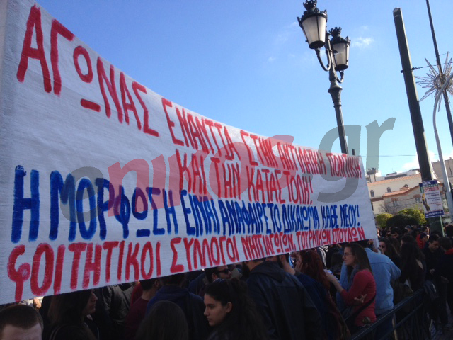Πλήθος κόσμου είναι συγκεντρωμένη αυτή τη στιγμή στο κέντρο τις Αθήνας, ενώ έχουν ήδη σηκωθεί, τα πρώτα πανό.