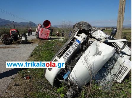 Τροχαίο ατύχημα σημειώθηκε το μεσημέρι στο 4ο χλμ. της επαρχιακής οδού Βαλτινού – Διαλεχτού στα Τρίκαλα. Ένας 35χρονος Αλβανός που οδηγούσε ένα επαγγελματικό φορτηγάκι με ψυγείο, φορτωμένο με κρέατα, συγκρούστηκε πλαγιομετωπικά με τρακτέρ που οδηγούσε ένας 65χρονος αγρότης από το Διαλεχτό. Αποτέλεσμα της φοβερής σύγκρουσης, ήταν να κοπεί το τρακτέρ στα δύο, ενώ το φορτηγάκι αναποδογύρισε.