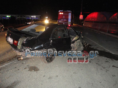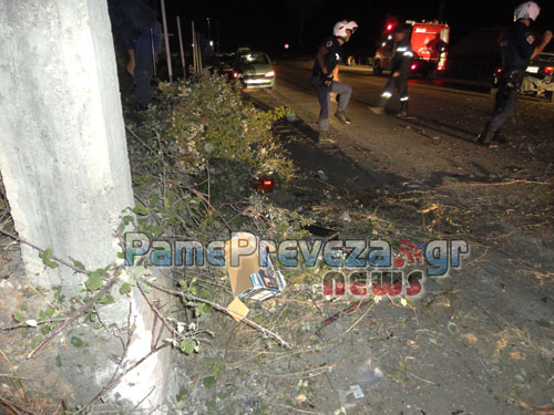 Αυτοκίνητο με κατεύθυνση από Πρέβεζα προς την Εθνική Οδό, στο οποίο επέβαιναν δύο νεαρά άτομα, χτύπησε σε μάντρα και στην συνέχεια κατέληξε στην μέση του δρόμου όταν για άγνωστους μέχρι στιγμής λόγους, ο οδηγός έχασε τον έλεγχο του οχήματος.