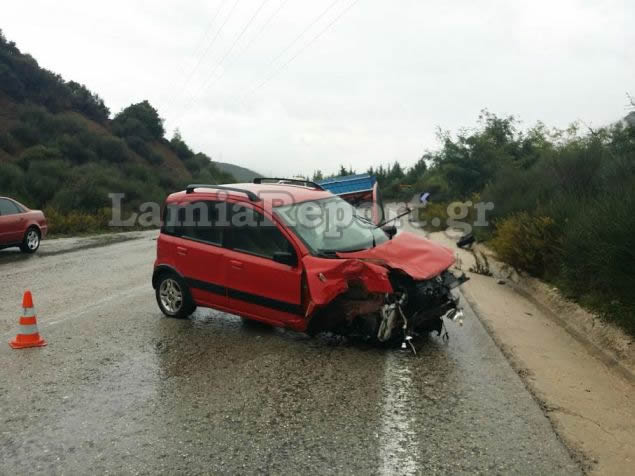 Στο ένα ατύχημα, που έγινε στο 17ο χιλιόμετρο, ένα αυτοκίνητο με κατεύθυνση τη Λαμία χτύπησε στο πίσω μέρος νταλίκα γεμάτη με ζωοτροφές, που προπορεύονταν, με συνέπεια να καταστραφεί ο τροχός της και το βαρύ όχημα να ντελαπάρει.