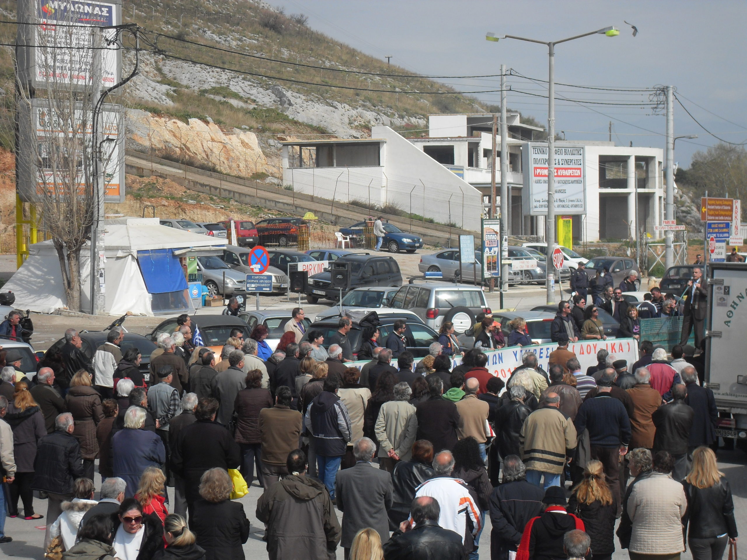 Συγκέντρωση διαμαρτυρίας πραγματοποίησαν στις 11.00 το πρωί οι κάτοικοι της Σαλαμίνας για την κατάργηση της ΔΟΥ και διοικητικών υπηρεσιών του ΙΚΑ που λειτουργούν στο νησί, εκφράζοντας την δυσαρέσκειά τους για τα σχέδια του υπουργείου Οικονομικών και της Τρόικας.