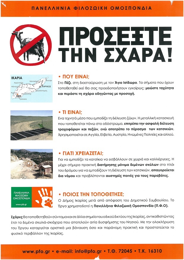 Στις αρχές του χρόνου τοποθετήθηκαν ειδικές σχάρες στους δρόμους της Ικαρίας προκειμένου να σταματήσει η απαράδεκτη πρακτική των βαρελόσκυλων. Των σκύλων δηλαδή που έμεναν μόνιμα δεμένα μέσα σε βαρέλια για να διώχνουν τα κατσίκια από τις καλλιέργειες.