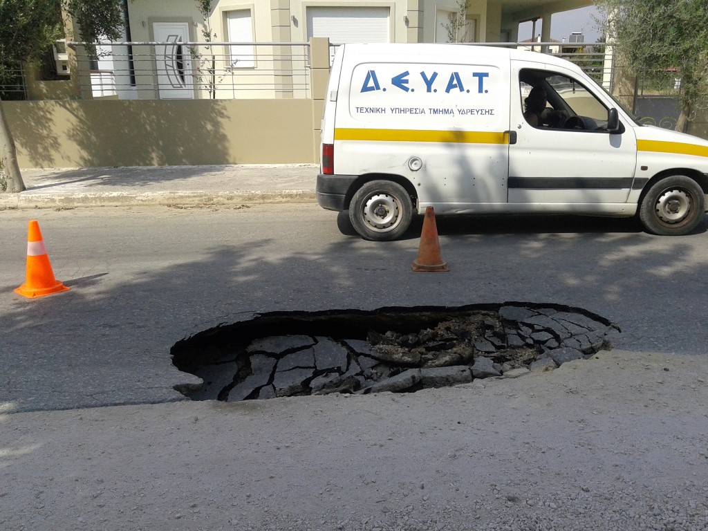 Από το συγκεκριμένο σημείο περνά αγωγός της ΔΕΥΑΤ και συνεργεία αυτής καταβάλλουν προσπάθειες αποκατάστασης της ζημιάς στο οδόστρωμα (το οποίο όπως φαίνεται και στις φωτογραφίες είναι κούφιο από κάτω), ενώ είναι η πιθανή η διακοπή της υδροδότησης για λίγες ώρες.