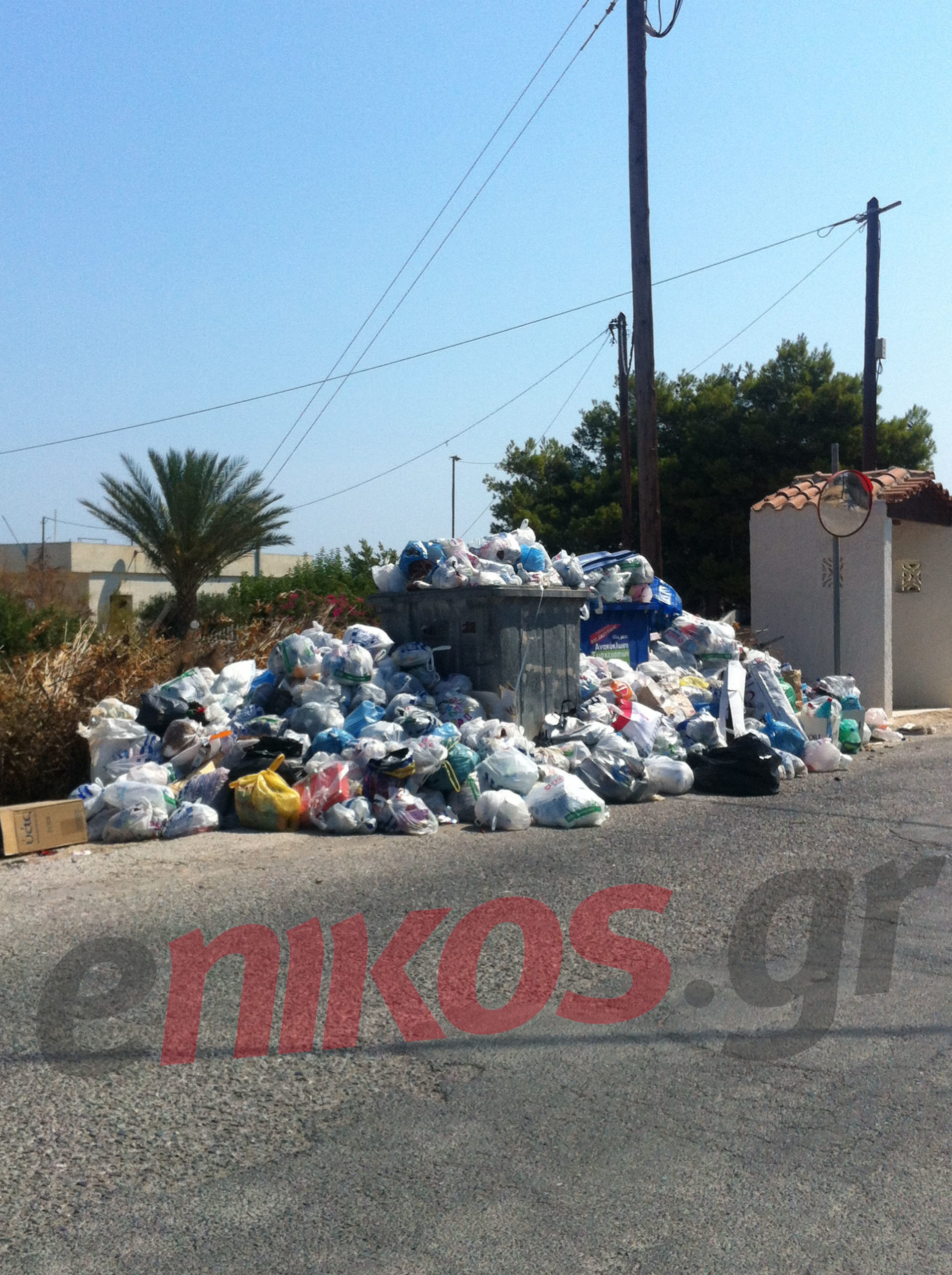 Όπως φαίνεται και στις φωτογραφίες που μας έστειλε ο αναγνώστης μας, τα σκουπίδια σχηματίζουν βουνά σε κεντρικά σημεία του νησιού, όπου «μαζεύονται ανά 4-5 μέρες, όχι όμως και στην περιφέρεια όπου η αποκομιδή γίνεται μετά από 18-20 μέρες και κατόπιν αρκετών τηλεφωνημάτων στους αρμόδιους. Τα μη οργανικά απορρίμματα έχουν να μαζευτούν τουλάχιστον 2 μήνες. Η απάντηση από υπευθύνους του δήμου είναι ότι δεν έχουν αυτοκίνητα , πετρέλαιο, ανταλλακτικά. Εγώ όμως, ο απλός δημότης, πληρώνω κανονικά τους λογαριασμούς της ΔΕΗ στον οποίον συμπεριλαμβάνονται και τα δημοτικά τέλη και ‘απαιτώ’ την στοιχειώδη καθαριότητα» τονίζει ο αναγνώστης μας και διερωτάται: «Η Περιφέρεια που είναι γνώστης αυτής της κατάστασης δεν θα έπρεπε να δώσει λύση;»