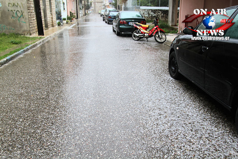 Νωρίτερα, την πόλη του Μεσολογγίου «χτύπησε» χαλαζόπτωση που σε συνδυασμό με ισχυρό αέρα, έκαναν την ατμόσφαιρα αφόρητη.