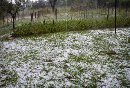 Όπως φαίνεται και στις φωτογραφίες, από την περιοχή της Αμπελιάς, το χαλάζι που έπεσε είχε το μέγεθος αμύγδαλου και στην κυριολεξία όλα έγιναν λευκά μέσα σε λίγη ώρα.